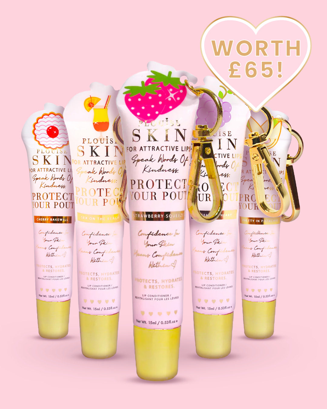 Each set contains a hand-picked selection of Protect Your Pout Lip Conditioners based on the theme you choose. Every conditioner helps: