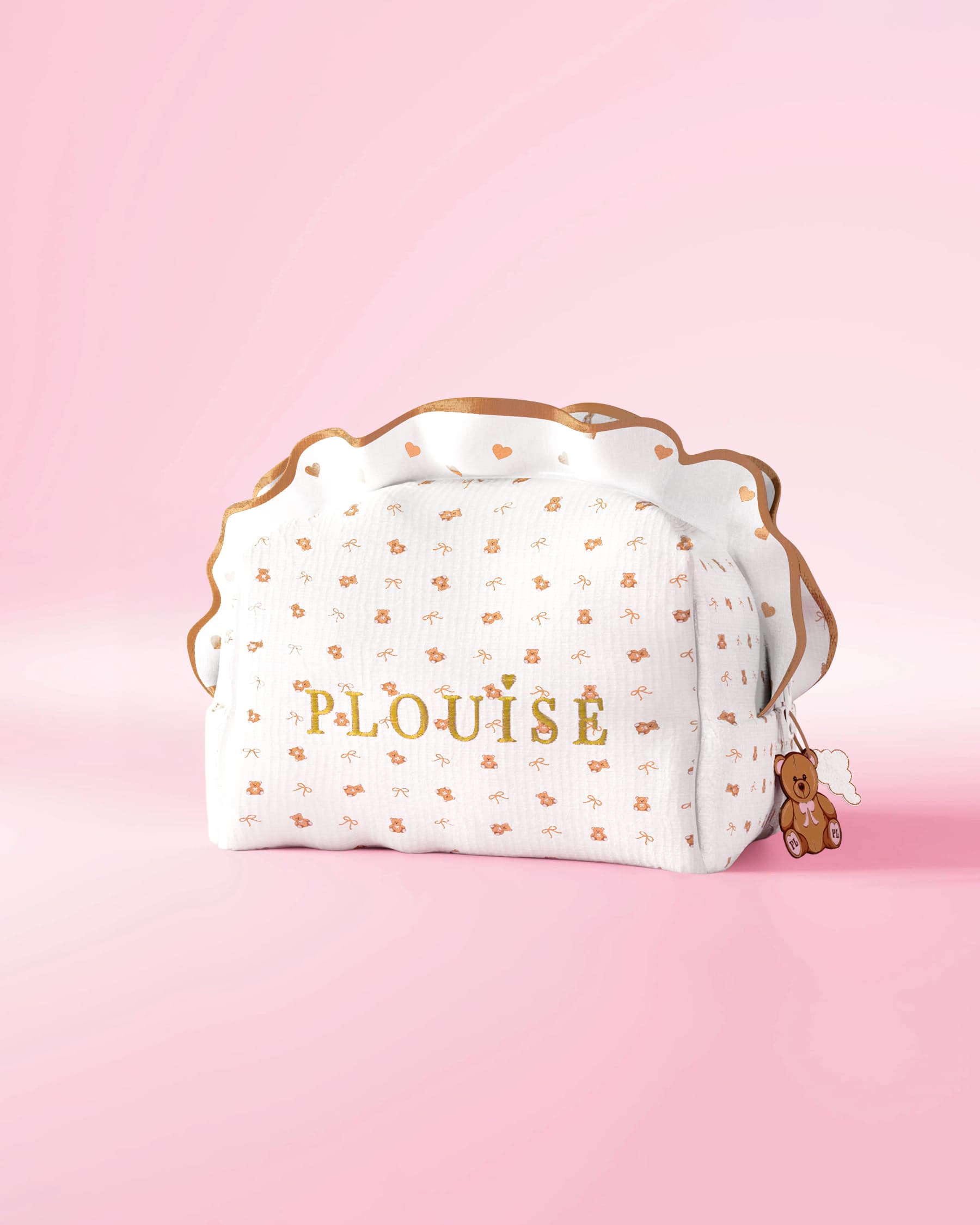 Chaque sac est confectionné dans un tissu blanc doux, orné de volants et de détails de marque brodés, et conçu pour rendre votre routine de soins de la peau ou de maquillage amusante, élégante et organisée. Choisissez entre Teddys à gros caractères audacieux pour un impact maximal, ou adorables Teddys à petits imprimés pour une touche subtile et ludique.